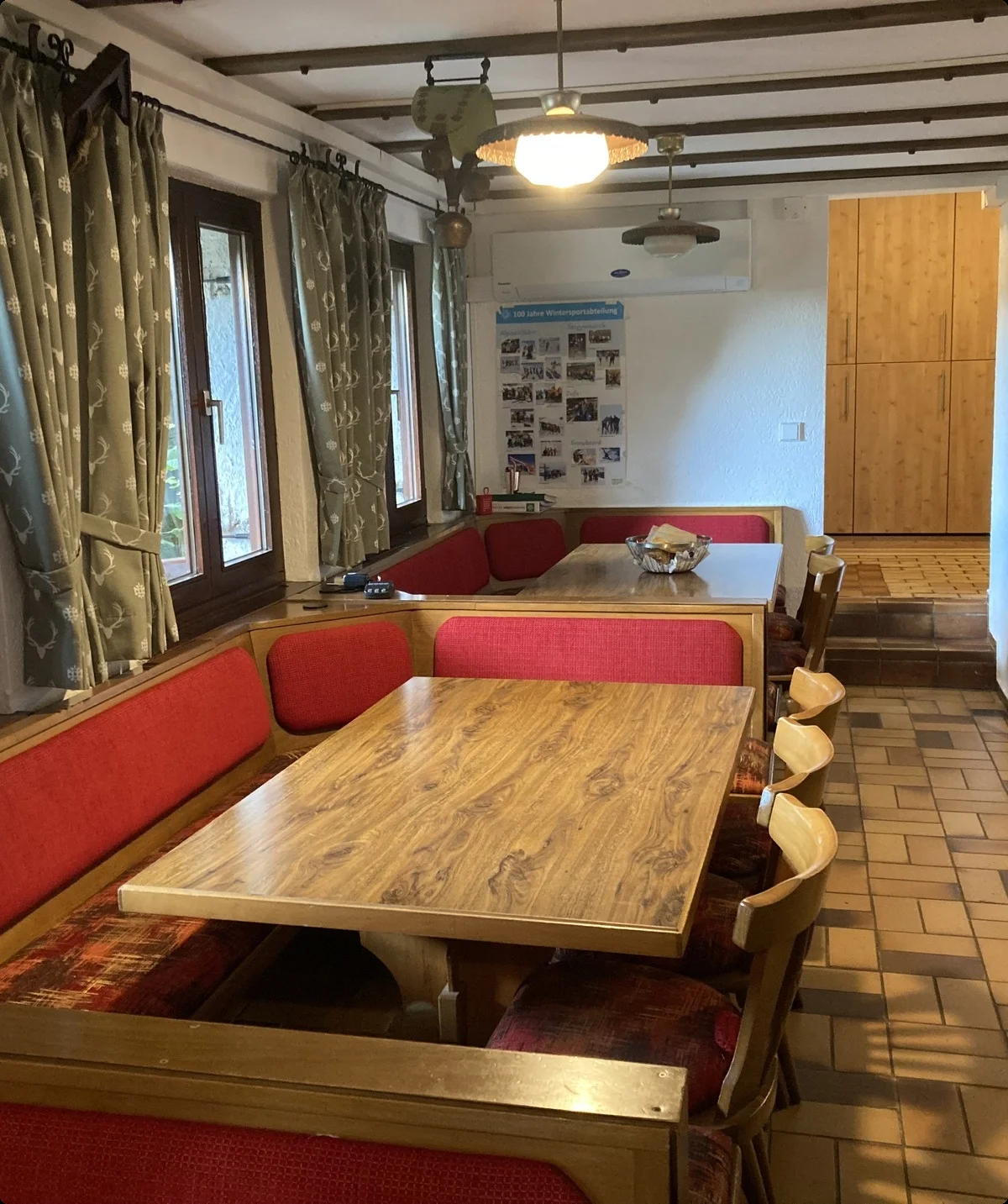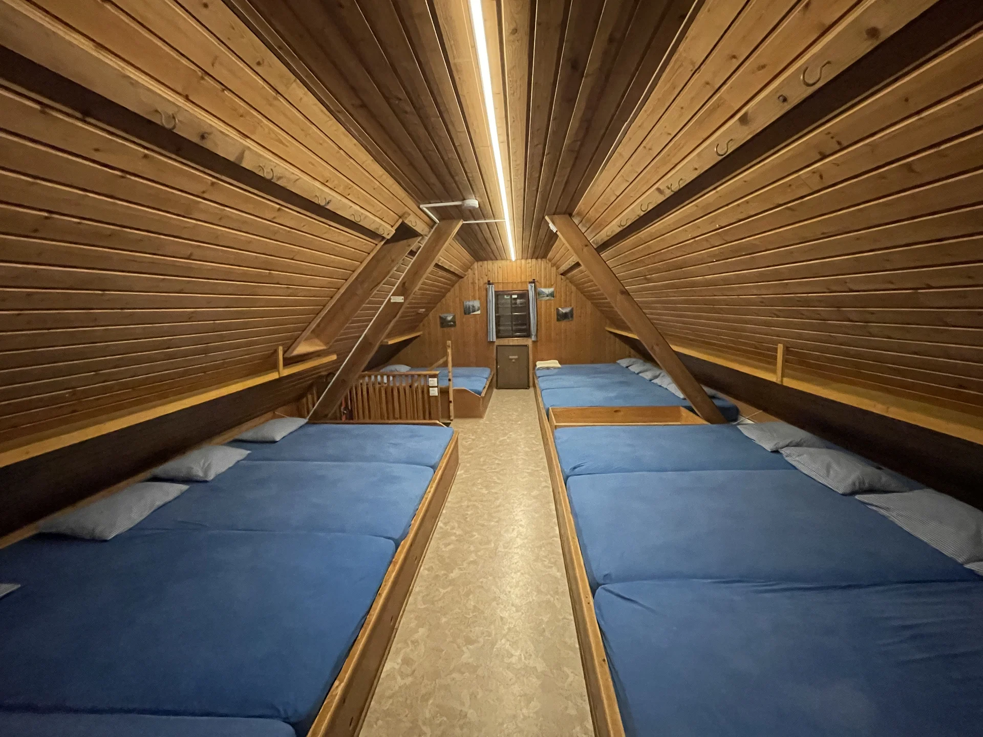 Ein Aufenthaltsraum mit Kachelofen und 26 Sitzplätzen, eine komplett neu ausgestattete Küche mit Gasherd und 13 Lagerplätze unterm Dach laden ganzjährig zum Verweilen und Übernachten ein. Die Hütte ist zu Fuß in ca. 5 min. vom Waldrand zu erreichen, Trinkwasser kann in der nahegelegenen Gaststätte geholt werden. Schlafsäcke, Hand- und Geschirrtücher bitte mitbringen.